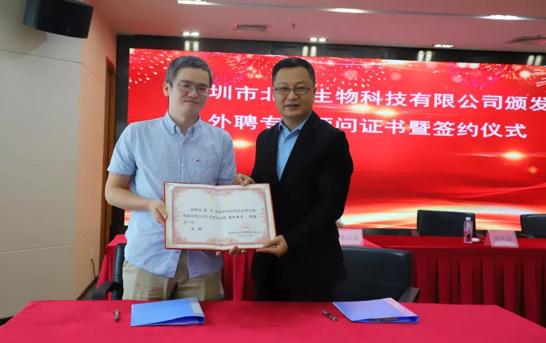 9月29日下午,為推動公司實現(xiàn)高質(zhì)量的發(fā)展,提升公司的核心競爭力,深圳市北科生物科技有限公司舉行了頒發(fā)外聘專家顧問證書暨合作項目簽約儀式。北科生物董事長胡雋源博士與蔣衛(wèi)教授簽訂《合作項目意向書》并頒發(fā)外聘專家顧問證書。蔣衛(wèi)教授是武漢大學(xué)醫(yī)學(xué)研究院教授、中南醫(yī)院特聘研究員,在干細(xì)胞分化、表觀遺傳學(xué)調(diào)控、長非編碼RNA等領(lǐng)域有著深入研究,已在國際刊物發(fā)表論文30多篇,被SCI引用2000余次。