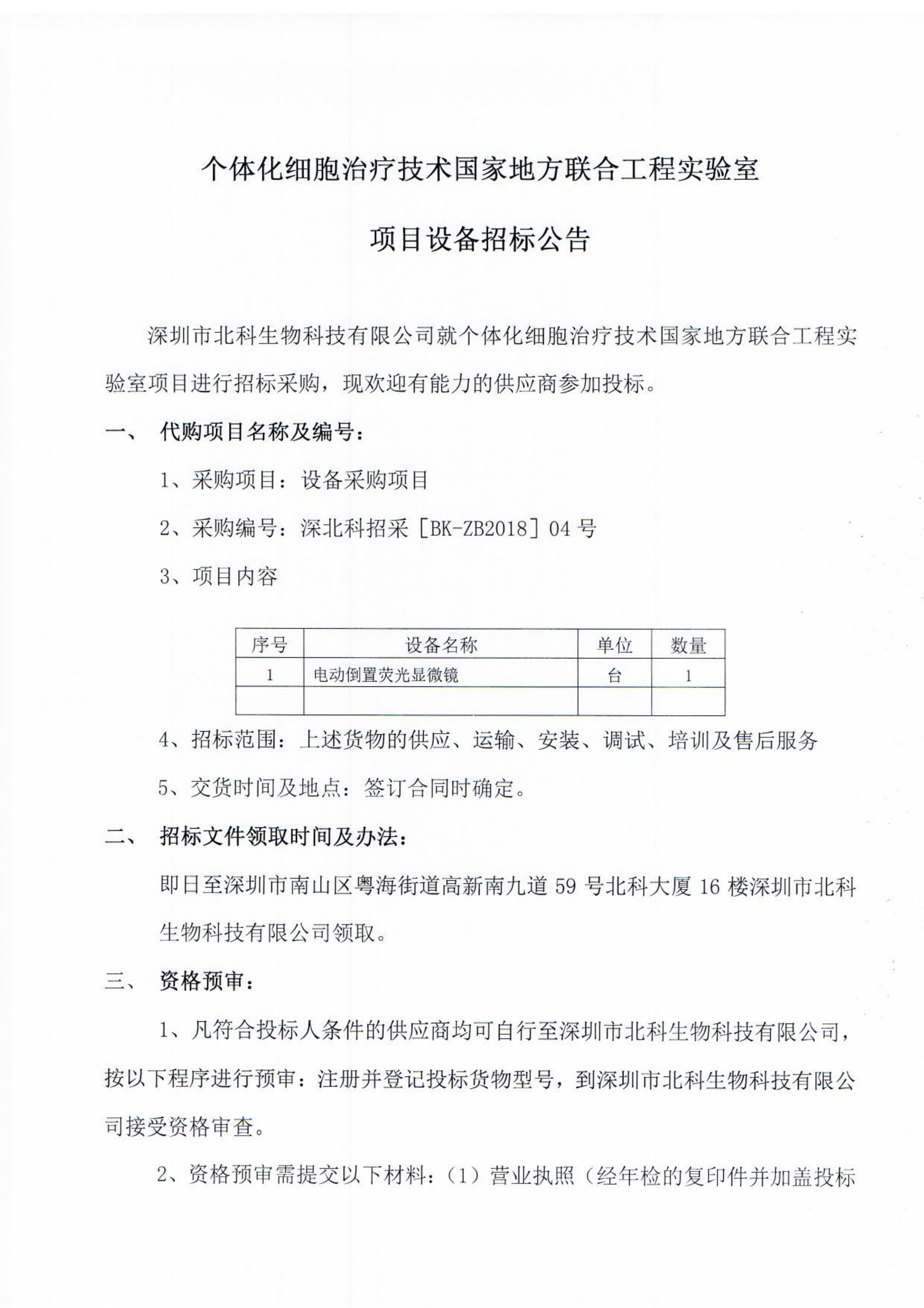 個體化細(xì)胞治療技術(shù)國家地方聯(lián)合工程實驗室項目設(shè)備招標(biāo)公告