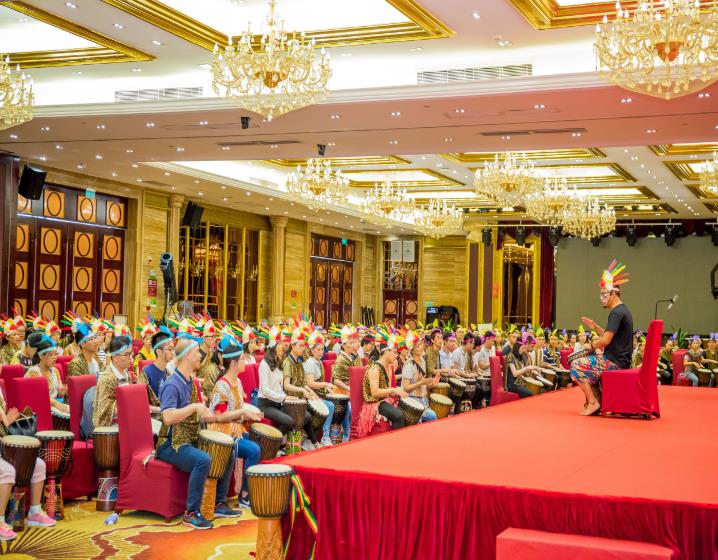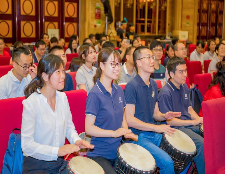 初始,在無言的敲打演奏中,每位北科人皆特立獨行,樂章零落散碎,主持人便提出北科多年來在細胞領(lǐng)域堅持的三個關(guān)鍵詞“專心、專業(yè)、專注”以勵大家,無論何時、何地、何事,身為北科一份子,北科人都應(yīng)上下一心、和而不同,在共同的目標(biāo)面前,所有人放下自己的身份、地位,只為實現(xiàn)在北科生物十三周年慶的今日,為它送上一曲誠摯的生日祝福。最后,在主持人耐心的引領(lǐng)下,在場的300余位北科人統(tǒng)一節(jié)奏、鼓點,為北科生物13周年慶典送上一曲慷慨激昂的音樂祝福!