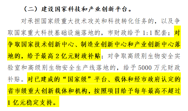 對承擔(dān)國家級重大技術(shù)攻關(guān)和科技轉(zhuǎn)化任務(wù),以及爭取國家重大科技基礎(chǔ)設(shè)施落地的給予財政補(bǔ)貼。