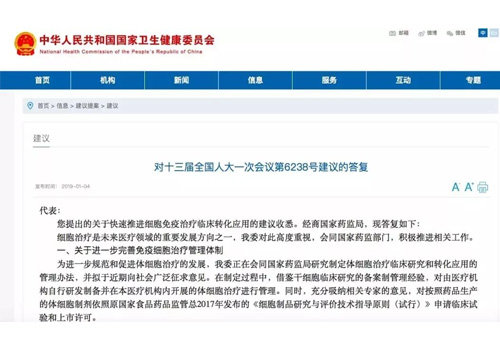 您提出的關(guān)于快速推進細(xì)胞免疫治療臨床轉(zhuǎn)化應(yīng)用的建議收悉。經(jīng)商國家藥監(jiān)局,現(xiàn)答復(fù)如下: