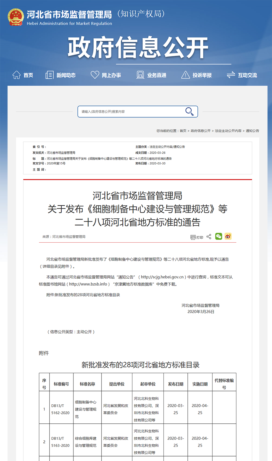 3月25日,河北省市場監(jiān)督管理局發(fā)布通知,《細(xì)胞制備中心建設(shè)與管理規(guī)范》(編號:DB13/T5162-2020)、《綜合細(xì)胞庫建設(shè)與管理規(guī)范》(編號:DB13/T5163-2020)正式批準(zhǔn)發(fā)布,將于4月25日正式實(shí)施。兩項(xiàng)標(biāo)準(zhǔn)是河北省標(biāo)準(zhǔn)化體系建設(shè)的重要組成部分之一,由河北省市場監(jiān)督管理局組織,河北省發(fā)展和改革委員會提出,河北北科生物科技有限公司,深圳市北科生物科技有限公司、個體化細(xì)胞治療技術(shù)國家地方聯(lián)合工程實(shí)驗(yàn)室(深圳)共同編制完成。
